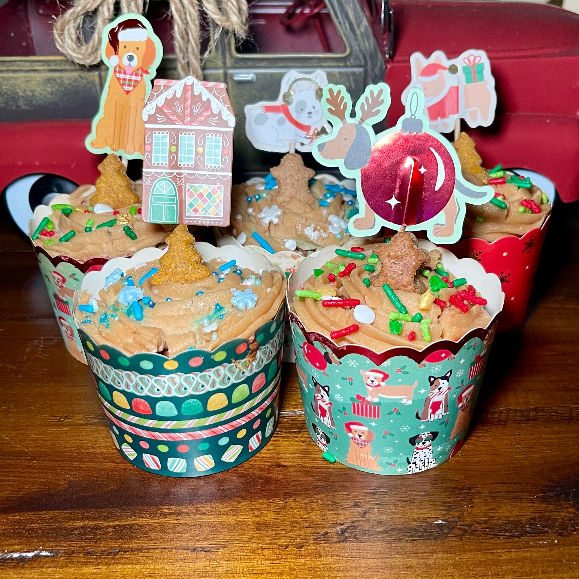 We are currently offering our Winter/Christmas Pupcakes! These are made using our Snickerdoodle recipe with honey, cinnamon, & cream cheese frosting topped with a mini festive cookie and Winter sprinkles.