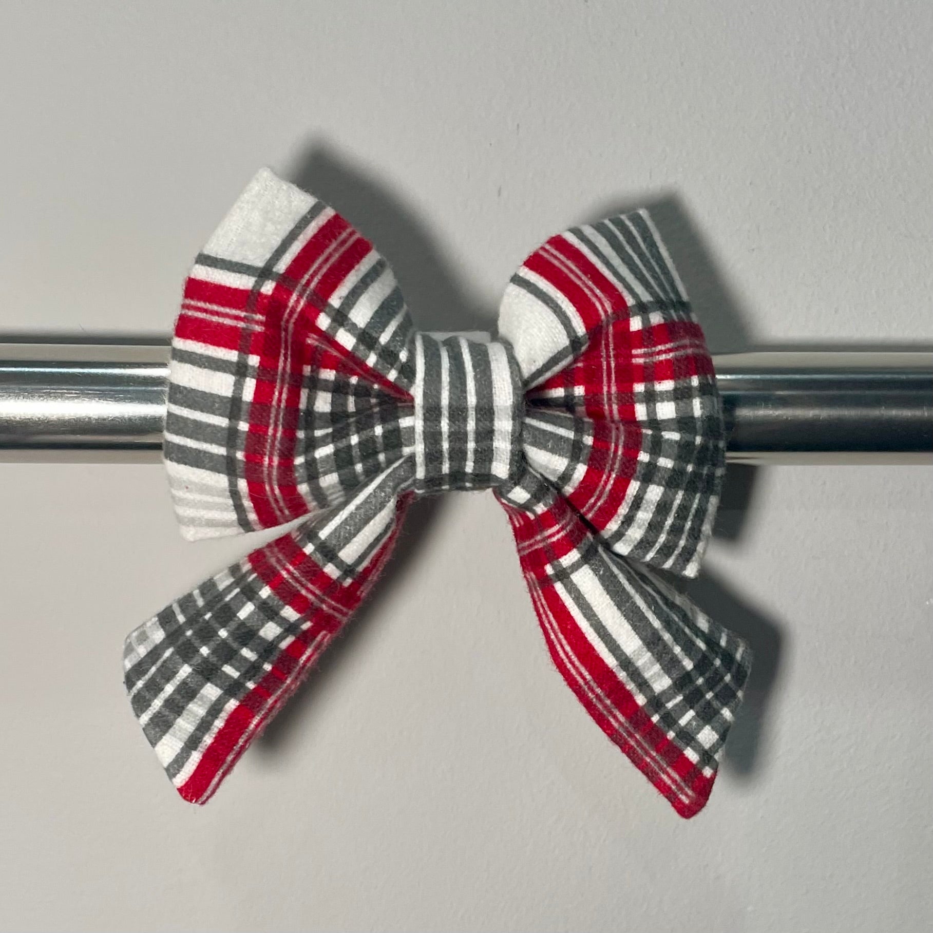 Red & Gray Stripe Plaid Collar Bow